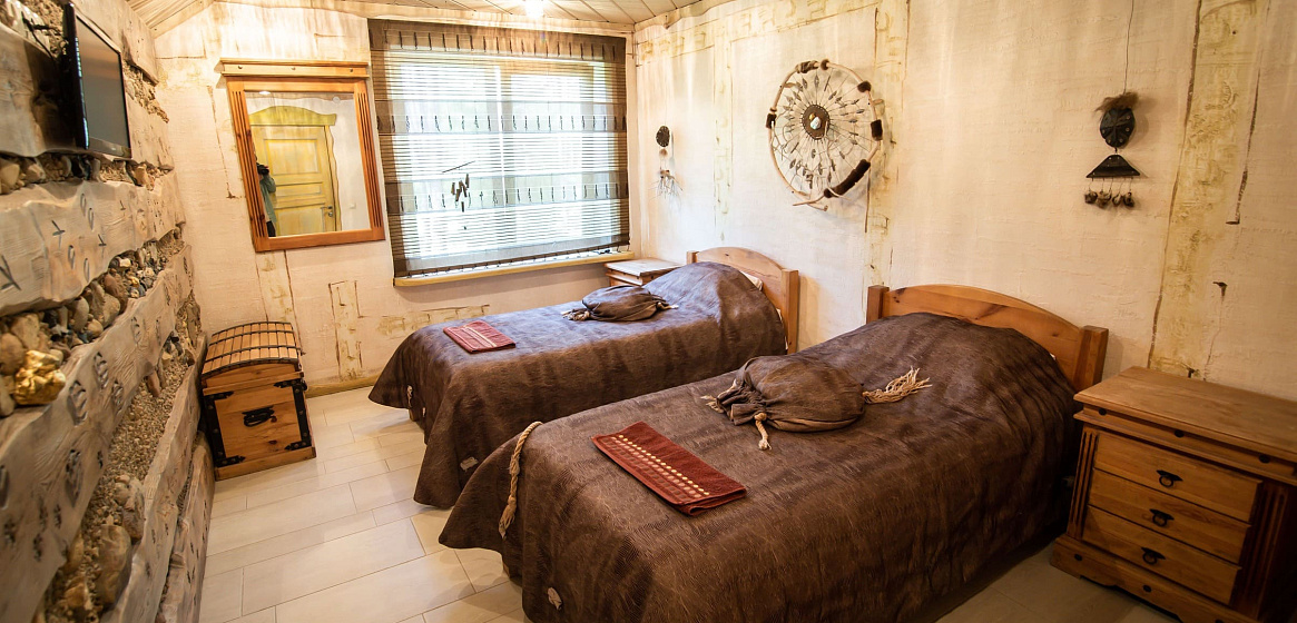 Всего в доме 9 спальных мест. По предварительному запросу администратор может организовать 1-2 спальных места (евро-раскладушка).