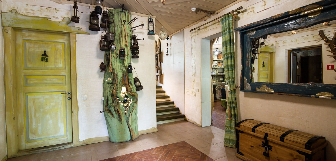 Дизайн дома никого не оставит равнодушным. Здесь можно часами разглядывать каждую изготовленную вручную деталь и восхищаться тем, как гармонично сочетаются сосны за окном, натуральные элементы отделки с северными мотивами, экологичность использованных материалов и особая атмосфера безмятежного отдыха.