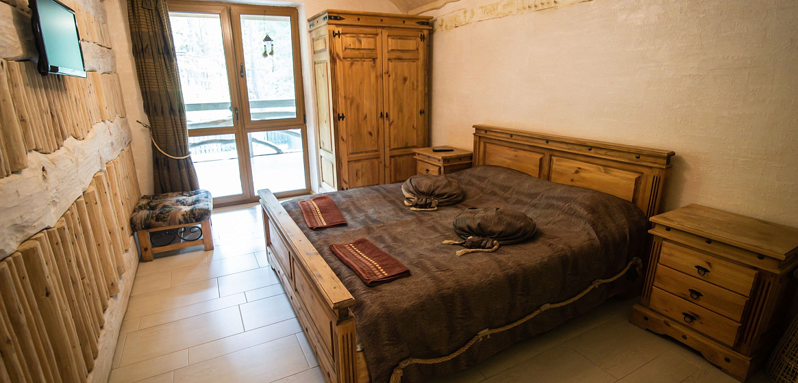 На втором этаже расположены 4 гостевые спальни, дополнительный санузел и просторный балкон для уединенного наслаждения природой. В каждой комнате есть TV со спутниковыми каналами.