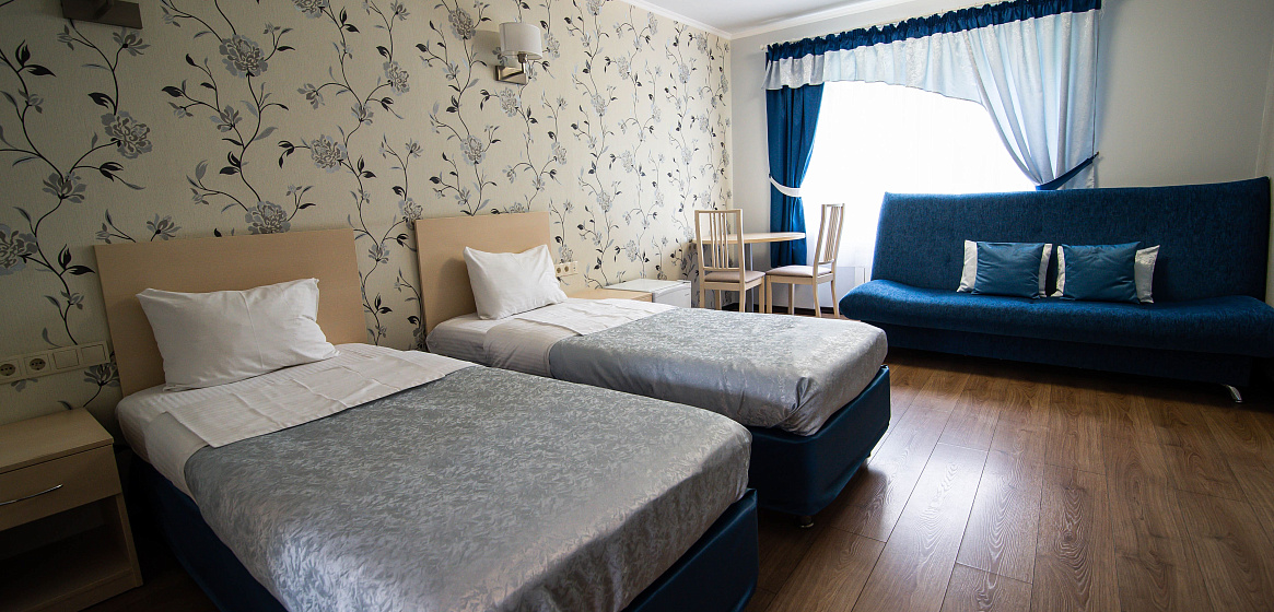 В отеле представлены номера в категории Twin и Double, предназначенные для 2 гостей и включающие одно дополнительное место. Все номера оснащены: удобной мебелью, телевизором, санузлом, душевой, холодильником, феном, спутниковым телевидением и электрочайником с чаем и кружками. Все комнаты ежедневно убирают горничные.