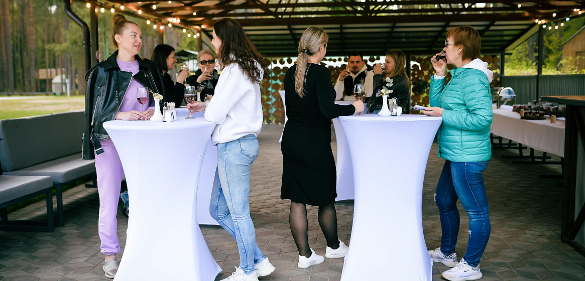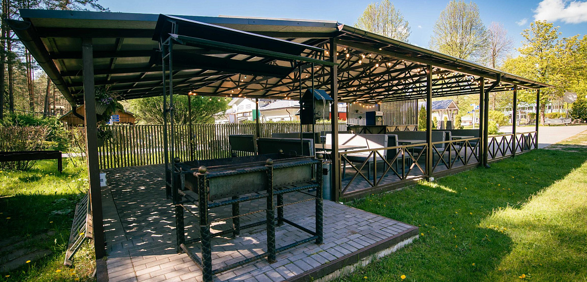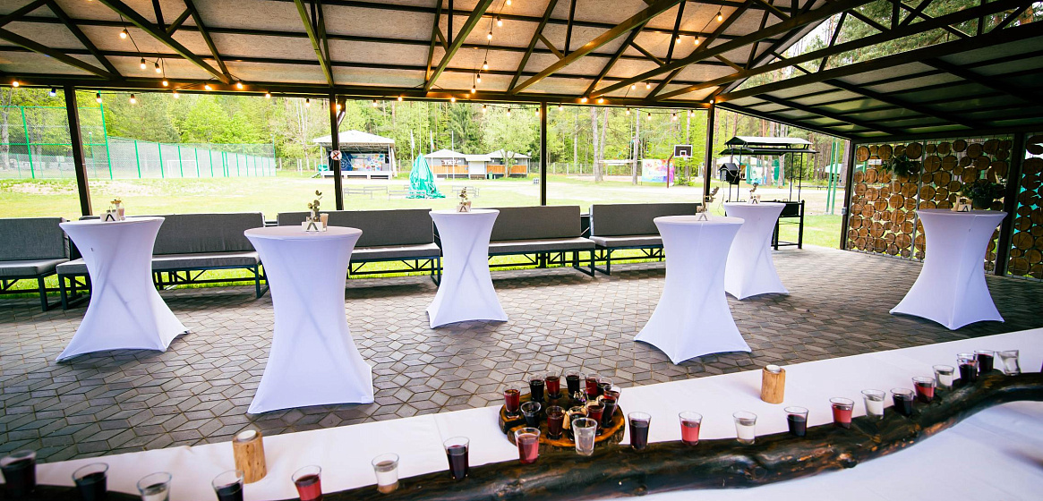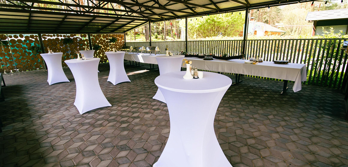 Если говорить о корпоративных мероприятиях и семейных торжествах, летнее кафе идеально подойдет для приветственного фуршета или ужина-барбекю в стиле шведского стола. Рядом оборудована мангальная зона, где прямо при вас на вертеле шеф-повар приготовит барашка и другие блюда-гриль.