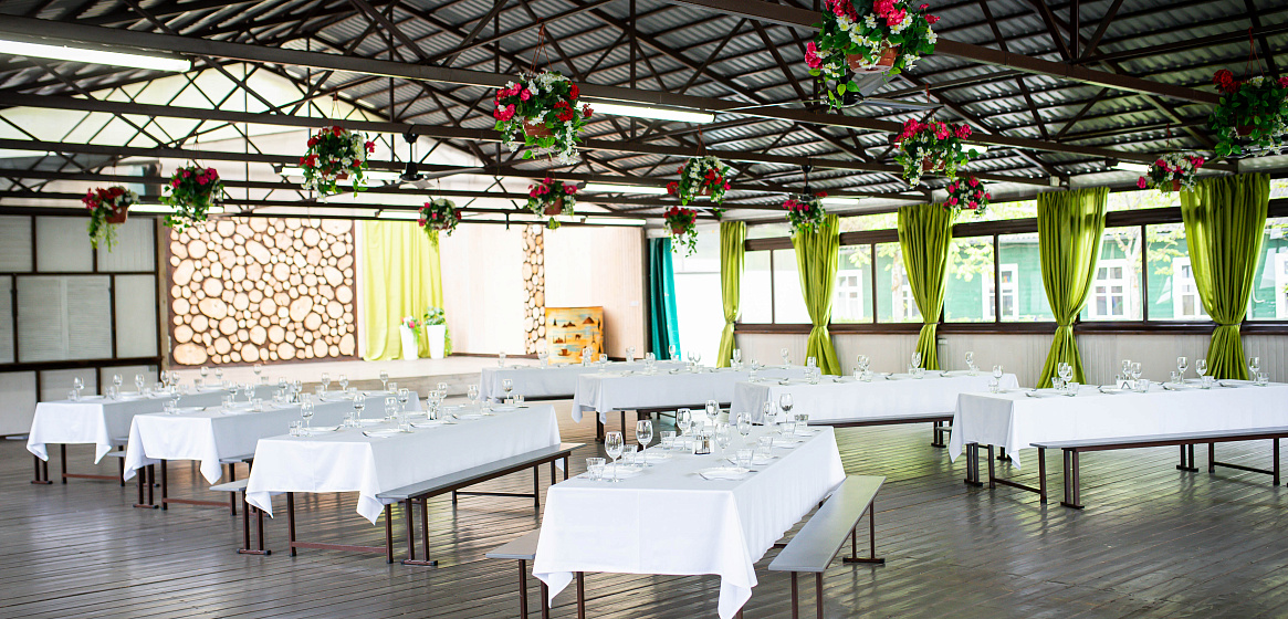 Гостеприимная и просторная центральная терраса загородного клуба "Фестивальный", как и многие объекты в нашем комплексе, выполняет ряд функций в зависимости от формата и задач предстоящего события.